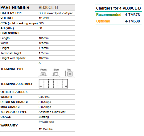- BATTERY TYPE: SSB PowerSport - V-Spec