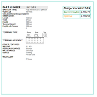 • Powerful cranking power - up to 4 times that of the equivalent lead acid battery