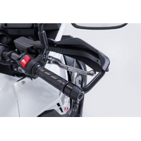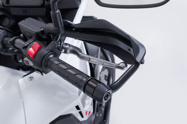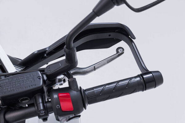 Whether on the road or off-road: The Adventure handguard kit protects the handlebar of your bike in the event of a fall and your hands from the elements as well as stone chips and branches. The basis is a sturdy aluminum bracket to which the Adventure handguard shells are attached. The impact-resistant plastic of the shells is flexible and offers the best protection from wind and weather; when driving off-road, your hands are protected from falling stones and contact with branches and bushes. The elegant shells with a matt black surface ensure a distinctive look on your bike. Thanks to the closed shape of the Adventure handguards, the handlebar and hands are also covered on the sides. For even more protection, the separately available crash pad set can be attached to the handguards. The extension set, which increases the protection area of the Adventure handguards, provides more weather protection.
