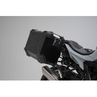 This set is the all-round, care-free pack for any tour. The water and dust-tight TRAX ADV premium aluminum case, two side cases and a top case offer your luggage the best protection. The bike-specific development of the detachable PRO side carrier and the ADVENTURE-RACK guarantee an optimal fit and secure grip for aluminium cases.