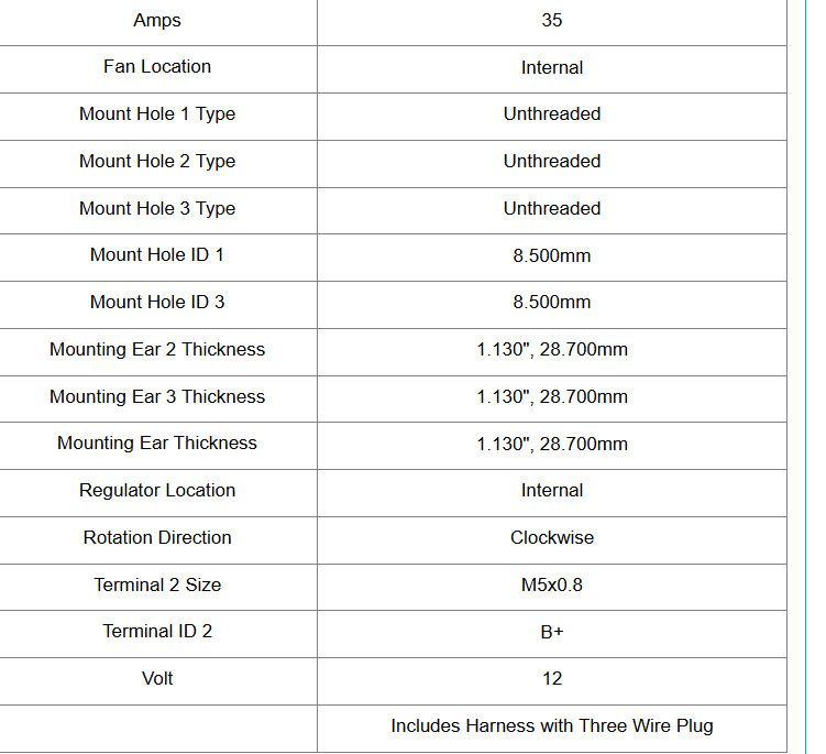 100% New aftermarket Alternator built to meet OEM specifications