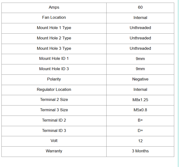100% New aftermarket Alternator built to meet OEM specifications