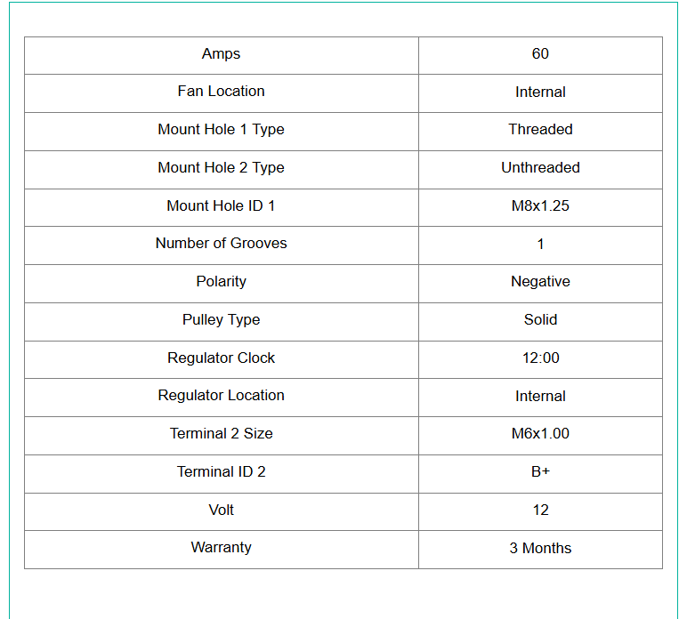 100% New aftermarket Alternator built to meet OEM specifications