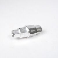 The Whites 4-in1 Hex Axle Tool is compatible with most late model sport and off-road motorcycles. The tool includes 17mm, 19mm, 22mm and 24mm sizes for quick and easy removal or installation of the axle. Constructed with a 3/8" drive recess on both ends for use with ratchets and torque wrenches. Manufactured from forged 7075-T6 aluminium for a lightweight design and enabling torque up to 90 foot-pounds.