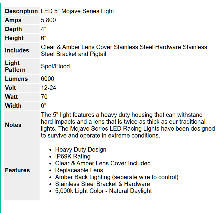Tiger Lights Mojave Series: Premium, high-powered racing lights designed to survive and operate in extreme conditions!