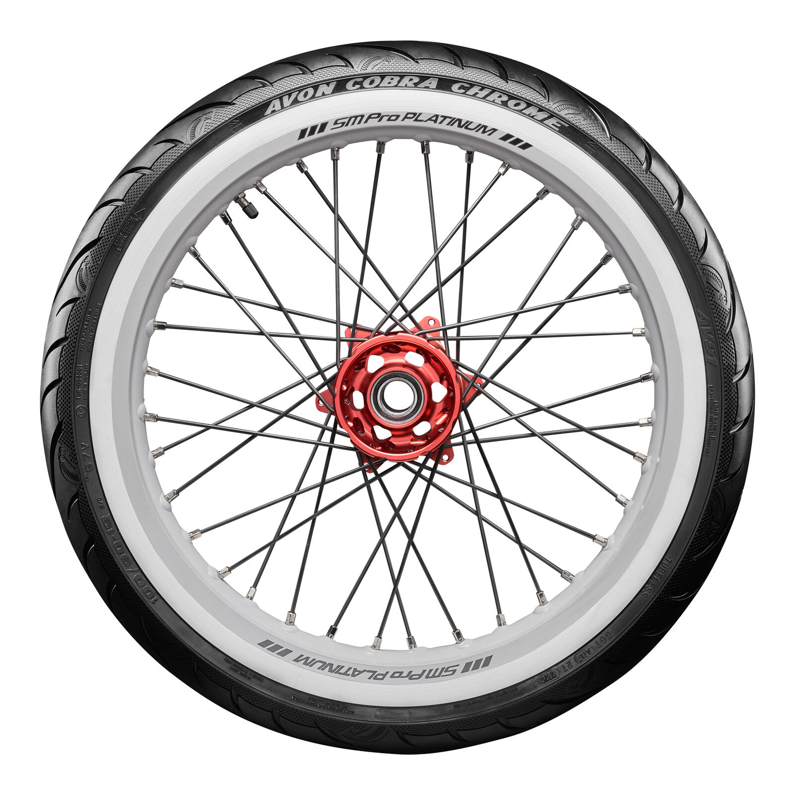 Avon Cobra Chrome Tyres are the next evolution of Avon’s popular Cobra range delivering enhanced performance without a trace of actual chrome. Developed using extensive R&D from the original Cobra tyres the Cobra Chrome offers superior grip in both dry and wet conditions along with a larger contact patch for improved handling and stability. Featuring an aggressive tread design and expanded snakeskin sidewall etching these tyres bring both performance and style to cruisers and custom bikes.