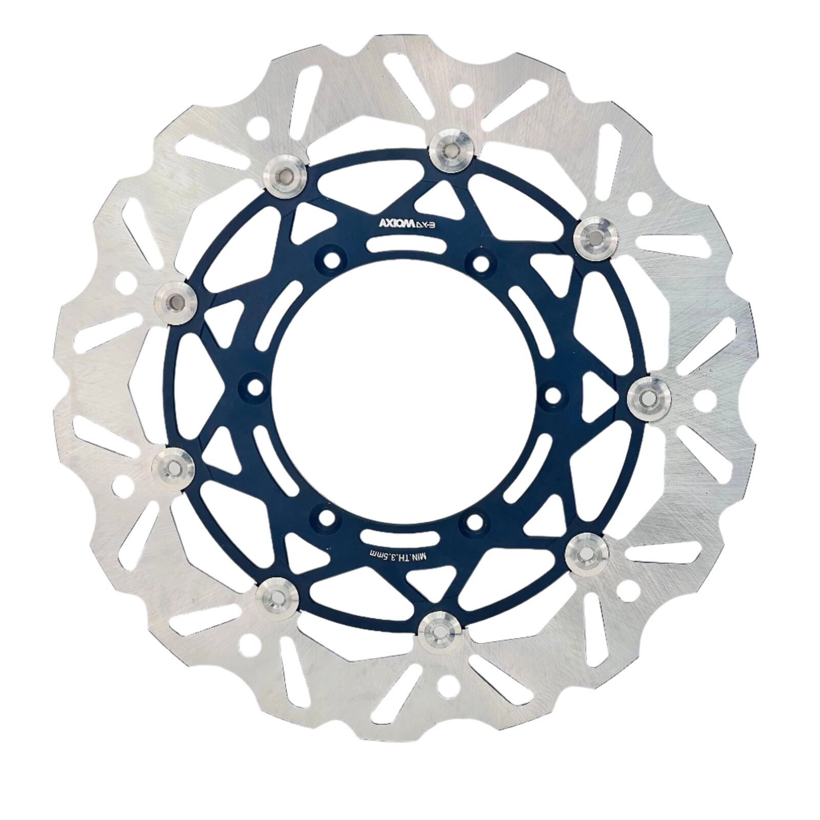 Axiom DX-3 Stomp Supermoto 320mm Discs are the ideal solution for the rider that wants race-oriented performance without the cost of switching to a full Supermoto Racing setup.