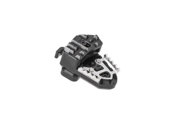 SW-MOTECH manufactures these extensions from high-strength milled aluminum alloy; they feature a black anodized surface and a stainless steel step plate. For optimal ergonomic adjustment, the increase in the brake pedal step can be adjusted in two stages of 22 or 27 millimeters.