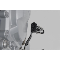 SW-MOTECH manufactures these extensions from high-strength milled aluminum alloy; they feature a black anodized surface and a stainless steel step plate. For optimal ergonomic adjustment, the increase in the brake pedal step can be adjusted in two stages of 22 or 27 millimeters.