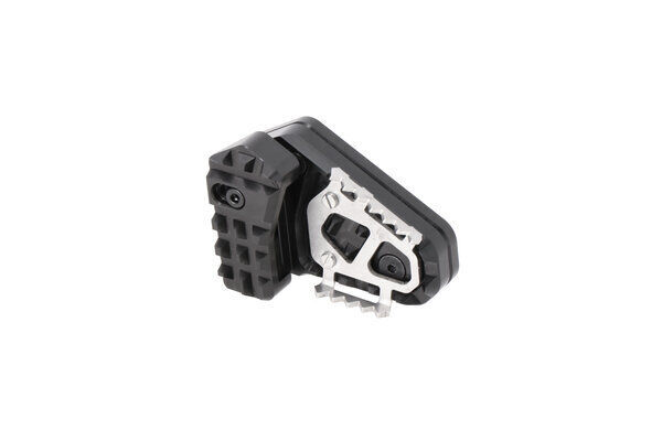 SW-MOTECH manufactures these extensions from high-strength milled aluminum alloy; they feature a black anodized surface and a stainless steel step plate. For optimal ergonomic adjustment, the increase in the brake pedal step can be adjusted in two stages of 22 or 27 millimeters.