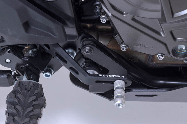 The adjustable brake pedal made of high-quality milled aluminum with HART-COAT® finish allows for optimized handling and control of the brake. The length of the SW-MOTECH brake pedal can be adjusted by 5 cm, so it suits every foot and every driving style. The tread pattern increases grip and provides improved stability for sporty driving and longer tours. With the Adventure tread (sold separately) you can improve brake pedal handling, especially during offroad driving while standing.
