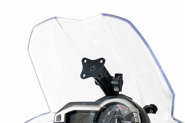 The pivoted socket arm enables optimal positioning of the GPS device. The GPS holder with its universal drill-hole pattern allows the secure attachment of many current models of GPS devices such as Navi Case Pro device cases and smartphone hardcases from SW-MOTECH.