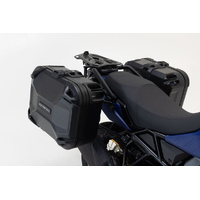 This complete system gives you all the components you need to get started on your next motorcycle tour with the Suzuki V-Strom 800DE and the DUSC: two robust DUSC hard cases, two removable PRO side carriers, an attachment kit and a keyed alike lock set. The bike-specific carriers and size of the cases are designed to perfectly match the shape of the tail as well as the motorcycle's exhaust system.
