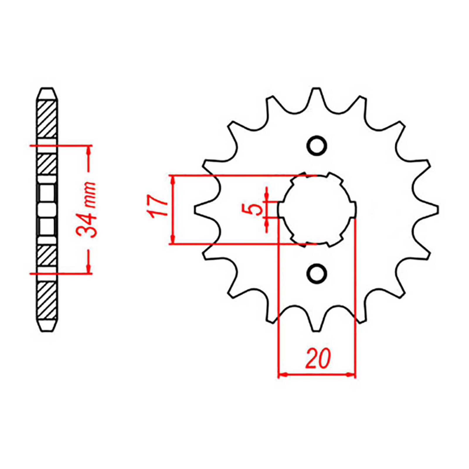 Check the specifications for sprocket teeth and chain size details.