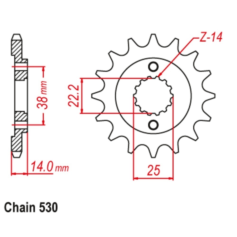 Check the specifications for sprocket teeth and chain size details.
