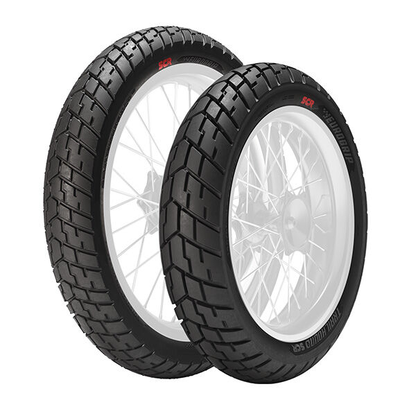 Conquer any terrain with the Eurogrip Trailhound SCR Combo, 100/90-18 front and 130/70-18 rear tyres.