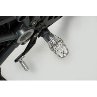 Is your original footrest impossible to position comfortably? Then the EVO footrest kit from SW-MOTECH is the perfect solution for you. This sophisticated system, consisting of rotating elements with firmly interlocking teeth, gives you 36 options for positioning. The position of the footrest can be adjusted so that it's lower or moved forwards or backwards as well as adjusted in terms of its angle to suit your individual needs. The bike-specific joint adapters are simply mounted on to the original parts of the footrest holder. We'll show you how this works in the mounting instructions.