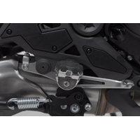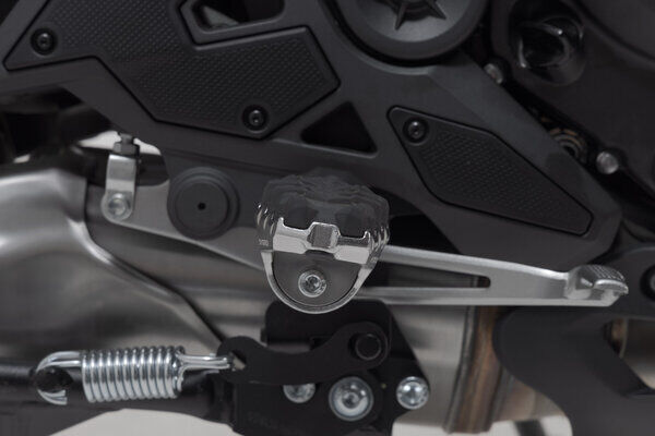 Is your original footrest impossible to position comfortably? Then the EVO footrest kit from SW-MOTECH is the perfect solution for you. This sophisticated system, consisting of rotating elements with firmly interlocking teeth, gives you 36 options for positioning. The position of the footrest can be adjusted so that it's lower or moved forwards or backwards as well as adjusted in terms of its angle to suit your individual needs. The bike-specific joint adapters are simply mounted on to the original parts of the footrest holder. We'll show you how this works in the mounting instructions.