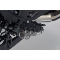 Is your original footrest impossible to position comfortably? Then the EVO footrest kit from SW-MOTECH is the perfect solution for you. This sophisticated system, consisting of rotating elements with firmly interlocking teeth, gives you 36 options for positioning. The position of the footrest can be adjusted so that it's lower or moved forwards or backwards as well as adjusted in terms of its angle to suit your individual needs. The bike-specific joint adapters are simply mounted on to the original parts of the footrest holder. We'll show you how this works in the mounting instructions.