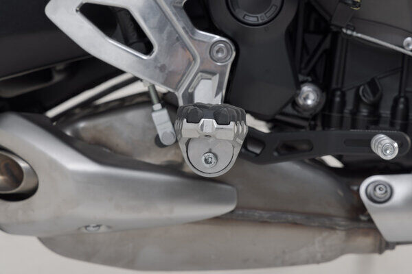 Is your original footrest impossible to position comfortably? Then the EVO footrest kit from SW-MOTECH is the perfect solution for you. This sophisticated system, consisting of rotating elements with firmly interlocking teeth, gives you 36 options for positioning. The position of the footrest can be adjusted so that it's lower or moved forwards or backwards as well as adjusted in terms of its angle to suit your individual needs. The bike-specific joint adapters are simply mounted on to the original parts of the footrest holder. We'll show you how this works in the mounting instructions.