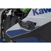 Frame crash pads provide additional protection in the event of a fall. The shape, surface and material of the pads provide excellent sliding properties to reduce damage to the motorcycle. The robust aluminium mounting bracket is easy to install, and the abrasion-resistant, CNC-milled slider pads are replaceable.