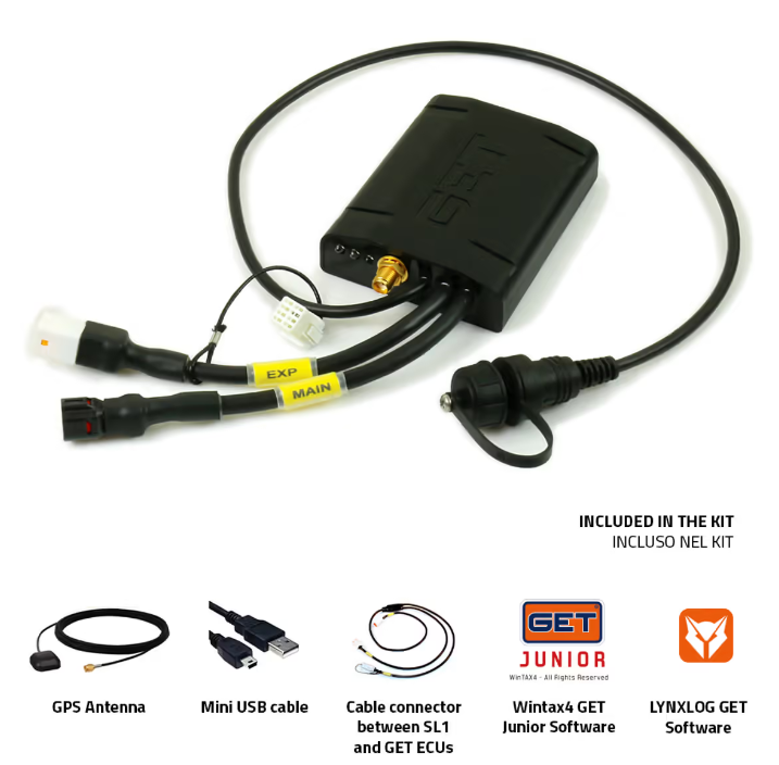 SL1 is fully compatible with the professional analysis software WINTAX4 “JUNIOR”, the GET tool designed for in-depth interpretation of collected data. Engine parameters, lambda sensor, additional sensors, lap times, speed, and more are transformed into actionable insights to optimize setup, riding, and race strategy.