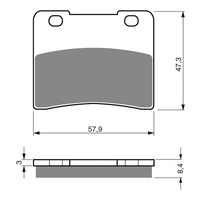 The S3 sintered compound is optimal in dry and wet conditions for road & off-road motorcycles. For the road application, S3 pads are suitable for both the front and rear brake while on off-road applications the S3 is only recommended for the front brake. The S3 series is designed for low abrasive interaction with the rotor and quieter braking due to the ceramic composite material. It has an HH friction rating and performs better at higher temperatures than the AD compound. Friction materials contain metal-ceramic with a bronze-graphite and non-metallic friction additives are spread evenly on the base fine bronze body to achieve optimal friction properties.