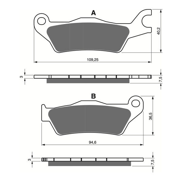 The S3 sintered compound is optimal in dry and wet conditions for road & off-road motorcycles. For the road application, S3 pads are suitable for both the front and rear brake while on off-road applications the S3 is only recommended for the front brake. The S3 series is designed for low abrasive interaction with the rotor and quieter braking due to the ceramic composite material. It has an HH friction rating and performs better at higher temperatures than the AD compound. Friction materials contain metal-ceramic with a bronze-graphite and non-metallic friction additives are spread evenly on the base fine bronze body to achieve optimal friction properties.