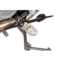 Our reasonably priced ION footrest kits allow the footrest to be mounted at its original height or lowered by 15 mm. Extremely durable and built to last, these stainless-steel footrests provide plenty of extra grip and are recommended for adventure, offroad and urban motorcycles. Hinges made from high-strength aluminum alloy ensure that the footrest can fold out of the way if the bike tips over. The removable rubber top surface reduces vibration, and the profile gives you a firm grip during offroad riding. To mount the bike-specific hinge adapter to the footrest sockets, the original attachments (springs, bolts, etc.) are used.