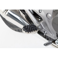 Our reasonably priced ION footrest kits allow the footrest to be mounted at its original height or lowered by 15 mm. Extremely durable and built to last, these stainless-steel footrests provide plenty of extra grip and are recommended for adventure, offroad and urban motorcycles. Hinges made from high-strength aluminum alloy ensure that the footrest can fold out of the way if the bike tips over. The removable rubber top surface reduces vibration, and the profile gives you a firm grip during offroad riding. To mount the bike-specific hinge adapter to the footrest sockets, the original attachments (springs, bolts, etc.) are used.