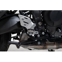 Our reasonably priced ION footrest kits allow the footrest to be mounted at its original height or lowered by 15 mm. Extremely durable and built to last, these stainless-steel footrests provide plenty of extra grip and are recommended for adventure, offroad and urban motorcycles. Hinges made from high-strength aluminum alloy ensure that the footrest can fold out of the way if the bike tips over. The removable rubber top surface reduces vibration, and the profile gives you a firm grip during offroad riding. To mount the bike-specific hinge adapter to the footrest sockets, the original attachments (springs, bolts, etc.) are used.