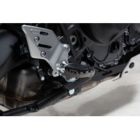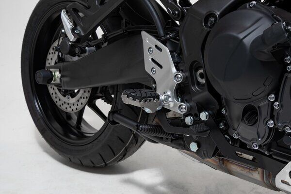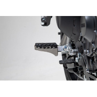Our reasonably priced ION footrest kits allow the footrest to be mounted at its original height or lowered by 15 mm. Extremely durable and built to last, these stainless-steel footrests provide plenty of extra grip and are recommended for adventure, offroad and urban motorcycles. Hinges made from high-strength aluminum alloy ensure that the footrest can fold out of the way if the bike tips over. The removable rubber top surface reduces vibration, and the profile gives you a firm grip during offroad riding. To mount the bike-specific hinge adapter to the footrest sockets, the original attachments (springs, bolts, etc.) are used.