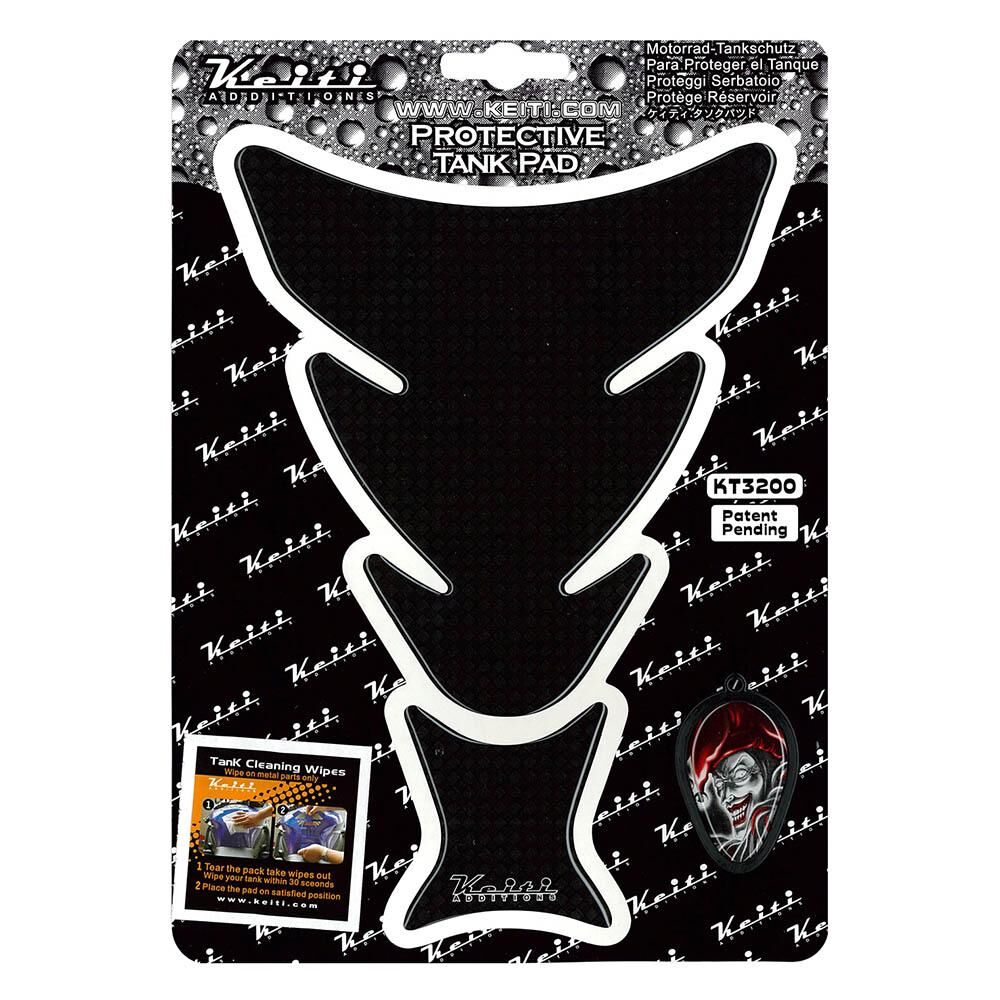 A protective accessory designed to prevent scratches on motorcycle fuel tanks from zippers and buckles while providing a carbon-fibre aesthetic. It features a 3D gel layer that is UV-resistant and self-repairing to maintain its appearance in harsh sunlight