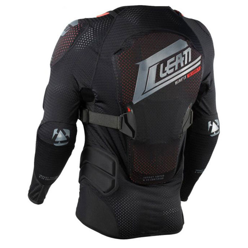 CE tested and certified made of soft flexible and ventilated 3DF AirFit impact foam that conforms to your body shape and offers a comfortable fit together with the MoistureCool flatlock stitched compression body sock and works with or without a Leatt Neck Brace.