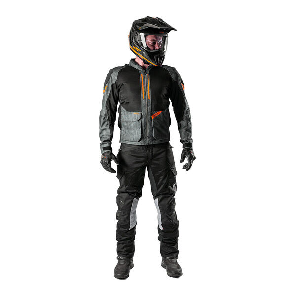 The Leatt 4.5 ADV FlowTour Jacket (Short) - Iron Grey is a versatile, adventure-ready jacket designed for warm weather riding, built with a durable rip-stop and large X-Flow mesh outer shell for maximum ventilation. It features a removable and packable HydraDri® EVO waterproof liner that can be worn over or under the jacket for protection against rain, along with Level 2 impact protectors for the back, shoulders, and elbows. This jacket includes multiple storage pockets, a hydration bladder-compatible back pocket, and reflective details for increased visibility.