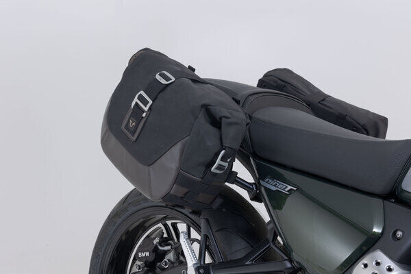 The side bag system for the BMW R12 nineT includes SLC side carriers for the left and right side as well as two LC1 Legend Gear side bags.