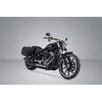 This LH side bag system has been specially developed by SW-MOTECH for the Harley-Davidson FatBoy / S, Breakout / S. It consists of an LH1 on the right-hand side and an LH1 side pocket on the left-hand side, including a matching carrier for the motorcycle. Due to the uniform size of the bags, the duo ensures a symmetrical appearance on the bike and also enables additional individual exhaust configurations.