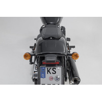 The bike-specific bag carrier can be easily and quickly mounted on to original attachment points on the fender strut. The quick lock system allows LH Legend Gear side bags to be attached and removed in just a few easy hand movements, without the driver foregoing reliable bag fastening.