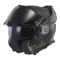 The most advanced convertible helmet on the market. Made of 100% Carbon fibre, including its 180º rotating chin bar that offers maximum lightness and safety. Perfect for any type of riding and for all weather conditions. Anti-scratch visor prepared for the anti-fog system, Pinlock Max Vision, and drop-down sun visor.