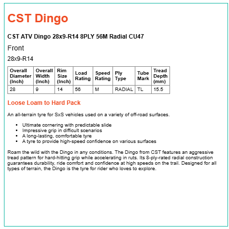 Maxxis 8PLY ATV Dingo Radial Tyre - 28x9x14 56M CU47
