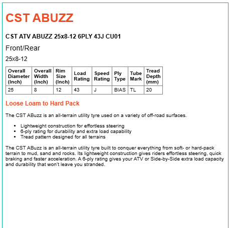 Maxxis ABUZZ is an all-terrain utility tyre built to conquer everything from soft or hard-packed terrain to mud, sand, and rocks.