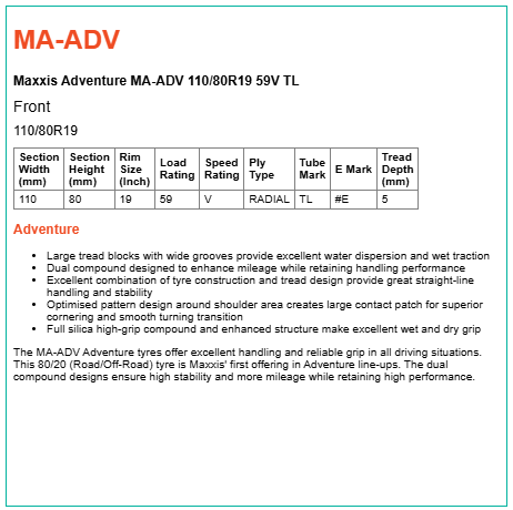 Maxxis Adventure MA-ADV Motorbike Tyre - 110/80R19 59V TL