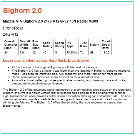 • The Bighorn 2.0 has a smaller tread block than the legendary Bighorn, reducing rotational mass - less drag for improved ride, fuel economy, and more traction for more power