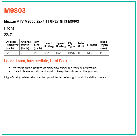 • Versatile tread pattern designed to excel in a variety of terrains