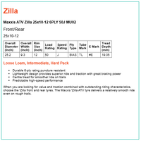 When you are looking for value and traction combined with outstanding riding characteristics, choose the 'Zilla front and rear tyres. The Maxxis 'Zilla ATV tyre delivers a relatively smooth ride even on rough trails.