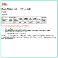 When you are looking for value and traction combined with outstanding riding characteristics, choose the 'Zilla front and rear tyres. The Maxxis 'Zilla ATV tyre delivers a relatively smooth ride even on rough trails.