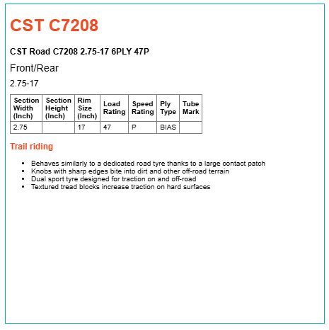 Maxxis CST Knobby C7208 Motorbike Tyre - 2.75-17 6PLY 47P
