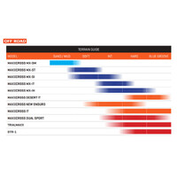 The revolutionary new Maxxcross MX IT is a fully-featured intermediate motocross tyre, with technologies including a dual compound tread pattern with long and varied tread pitches. The front MX IT tyre features Maxxis' standard IT compound for the base of the knobs, with a soft cap layer of rubber across the center to absorb vibration and enhance braking traction. The rear tyre's center tread knobs feature a softer compound than the shoulders for holeshotting traction while maintaining stability when leaning. The long and varied pitches of the tread design mean that the new Maxxcross MX IT can grip any terrain from soft to hard with each rotation. This tyre is optimized for outdoor tracks with varying terrains. To top it off, a new Maxxis sidewall construction provides a sure-footed base, limiting tyre roll in corners.