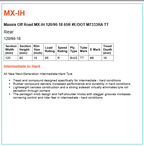 Maxxis Off Road MX-IH 120/90-18 65R #E/DOT M7333RA TT (T-Dub Tyre)