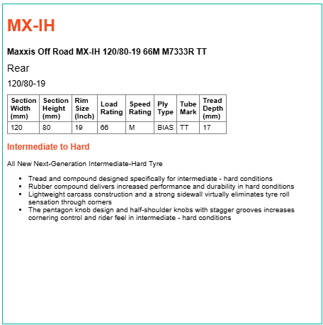 Maxxis Off Road MX-IH Motorbike Tyre - 120/80-19 M7333R TT